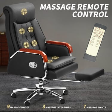 Say goodbye to aching muscles. This genuine leather office chair features a built-in massage function with seven automatic vibration points. It works to soothe tension across your back while the three-stage, ergonomic backrest provides dedicated support for your lumbar, mid-back, neck, and head.