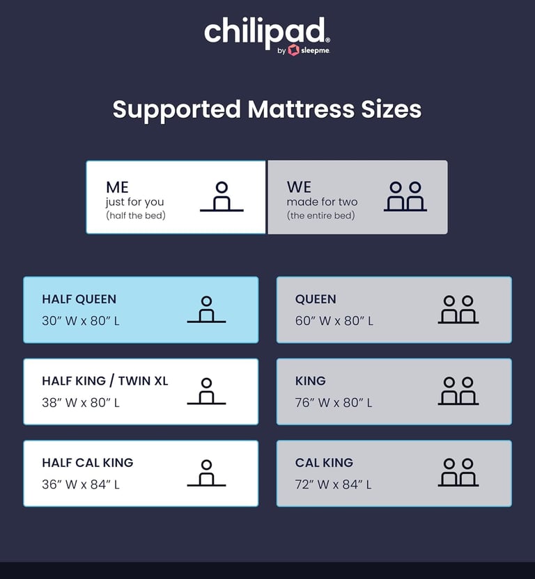 At the core of its functionality, the Chilipad Cube utilizes a hydronic mattress pad that circulates water through its channels, enabling users to select their preferred temperature settings. This system is particularly useful for couples who often have differing temperature preferences, as it allows each person to configure their side of the bed independently. The specific model, cp500, is designed to fit various mattress sizes, but is notably available in a unique half queen bed size of 30" width by 80" length, making it an excellent choice for those with compact sleeping arrangements or adjustable beds.