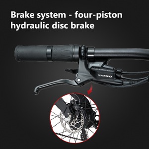 Your safety is our priority. The bike is outfitted with code HD-E395 hydraulic quad-piston disc brakes, delivering reliable and responsive stopping power for any unexpected situations during your ride.