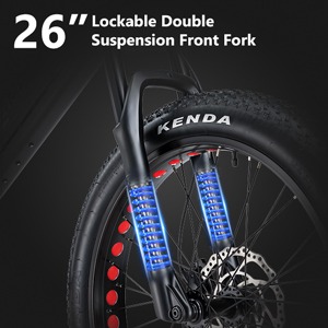 Tackle any terrain with ease. The MEELOD is equipped with sturdy 26”x4.0” spoked wheels and serrated fat tires that grip well on a variety of surfaces. A lockable double suspension fork allows you to adjust the shock absorption, providing unparalleled stability and a smooth ride whether you're on city streets or a mountain trail.